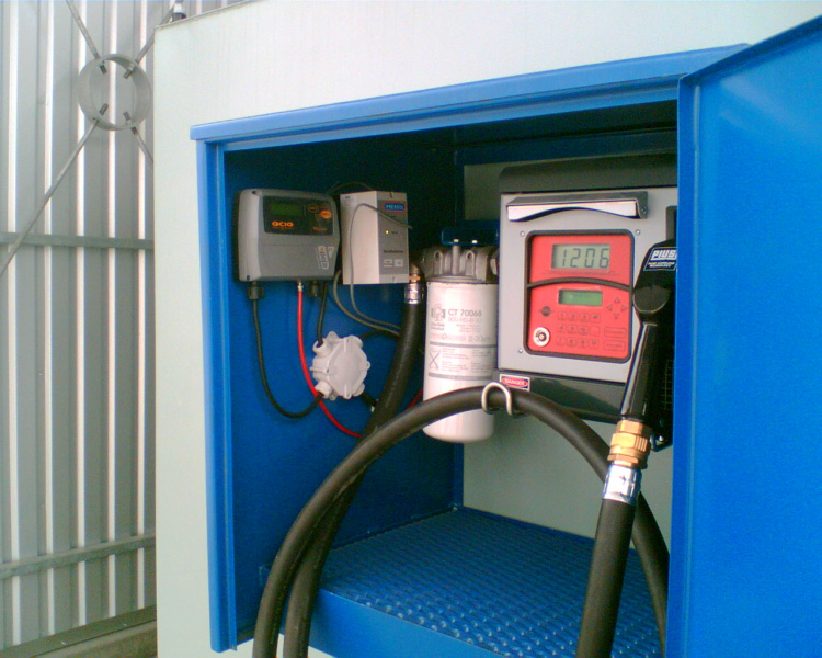 Vnitropodniková čerpací stanice s dvouplášťovou celokovovou nádrží pro skladování nafty. Stojan s elektronickou evidencí umístěn v kovové uzamykatelné skříni.