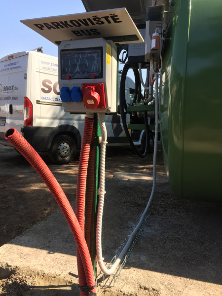 Vnitropodniková čerpací stanice pro Národní hřebčín Kladruby nad Labem. Nádrž celokovová dvouplášťová s elektronickým snímáním mezipláště. Výdej nafty prostřednictvím stojanu s elektronickou evidencí a přenosem dat do PC.