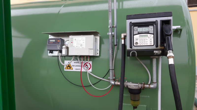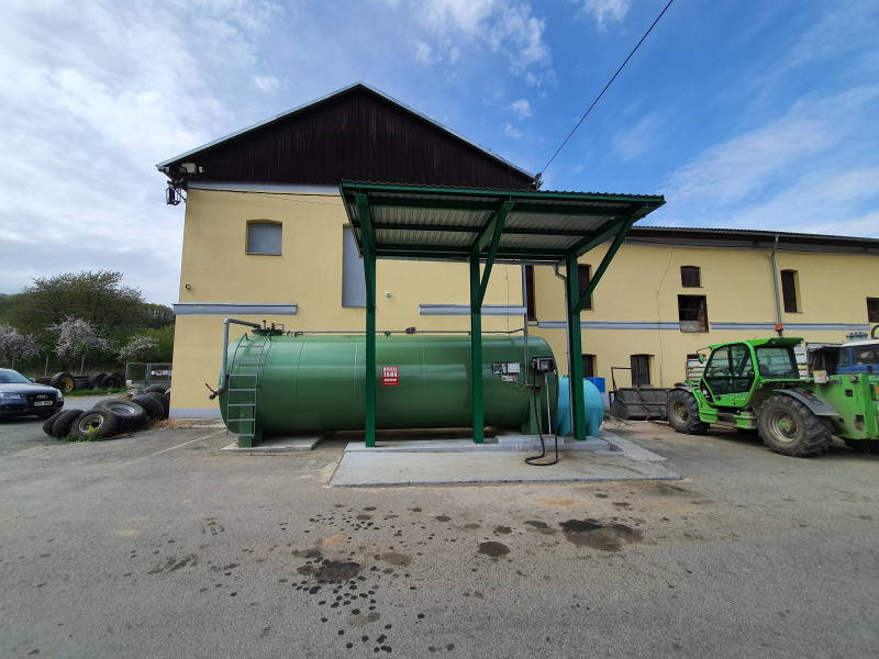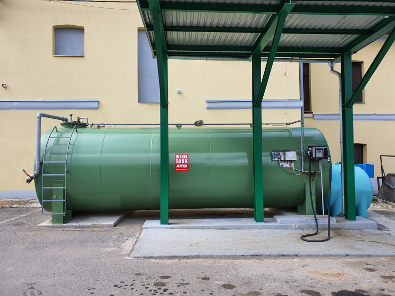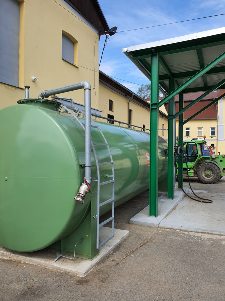 Vnitropodniková čerpací stanice na naftu s celokovovou dvouplášťovou nádrží s kapacitou 30.000 l a výdejním zařízením s elektronickou evidencí a přenosem dat do softwaru v PC.