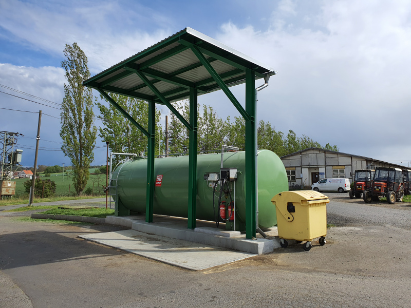Realizace vnitropodnikové čerpací stanice na naftu pro Zemědělské družstvo Koloveč. Nafta skladována v celokovové dvouplášťové nádrži s kapacitou 30.000 l. Nádrž je osazena výdejním stojanem na naftu s elektronickou evidencí a přenosem dat do softwaru v PC. Zároveň je nádrž vybavena elektronickým snímáním hladiny a filtrací nafty.