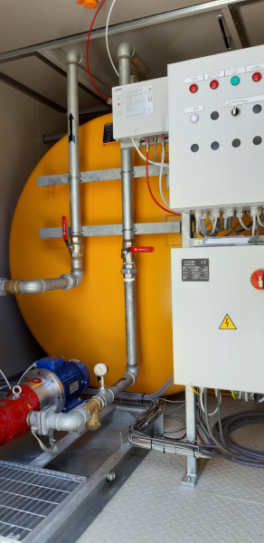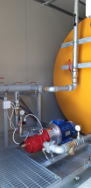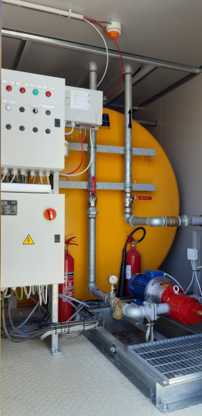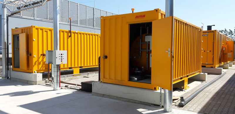 Nádrže umístěny v námořních kontejnerech lakovaných na zakázku do barvy RAL dodavatele JCB. Nádrže vybaveny kontinuálním snímáním hladiny, elektronickou evidencí havarijních stavů a snímáním úniku do mezipláště. Všechny signály napojeny do řídícího centra. Plnění nádrží dieselagregátů automatickým systémem, který spíná elektrické čerpadlo. Vše řízení elektronickými ventily se signalizací stavu otevření nebo zavření.