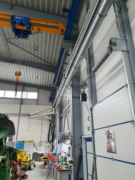 Dodávka kompletního odsávání výfukových zplodin pro servisní středisko dodavatele zemědělské techniky Agrozet České Budějovice. Odsávání realizováno pomocí velkých výklopných ramen osazených odsávací hadicí a koncovkou na balanceru. Dodávka vč. kompletní elektroinstalace.