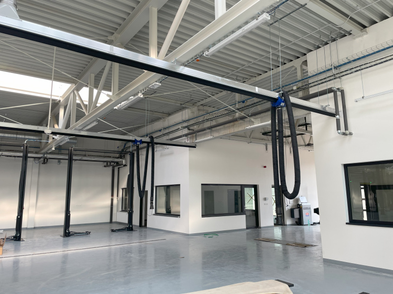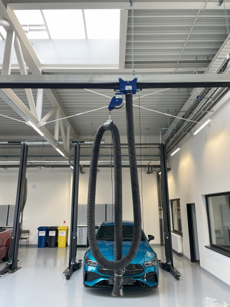 Pro nový servis osobních automobilů Mercedes-Benz Fa Rene Pardubice, jsme dodali kompletní systém odsávacích lišt s pojízdnými vozíky.