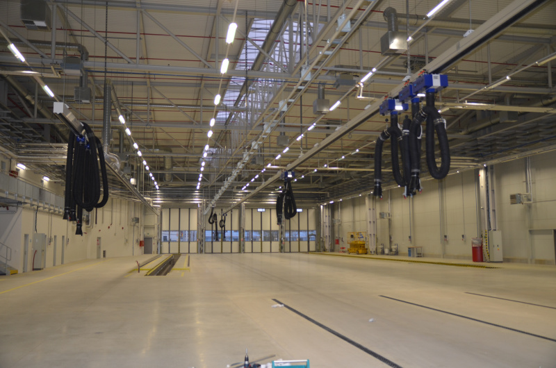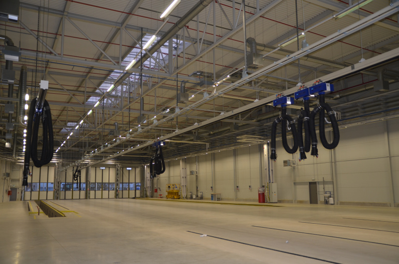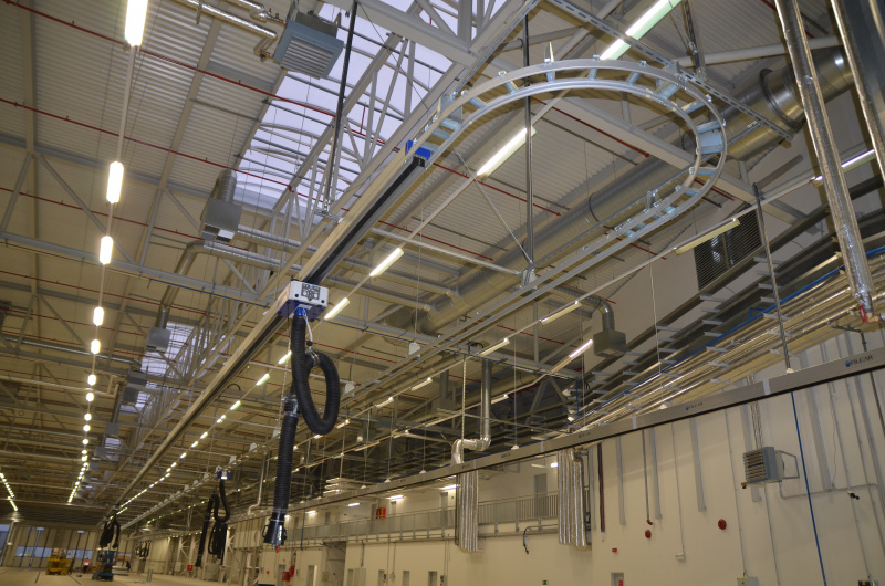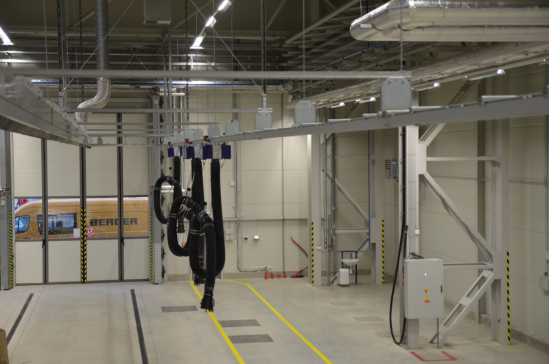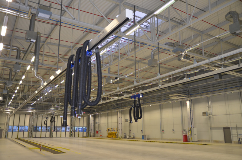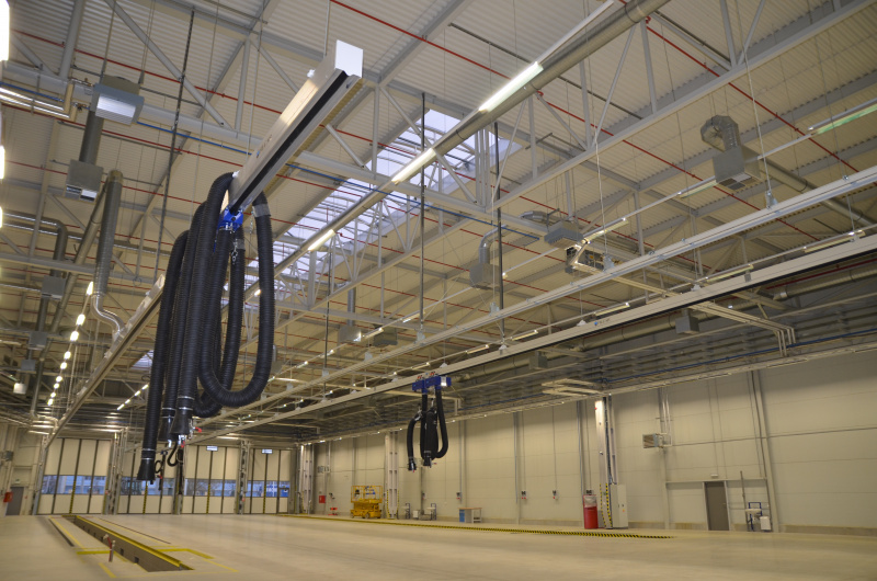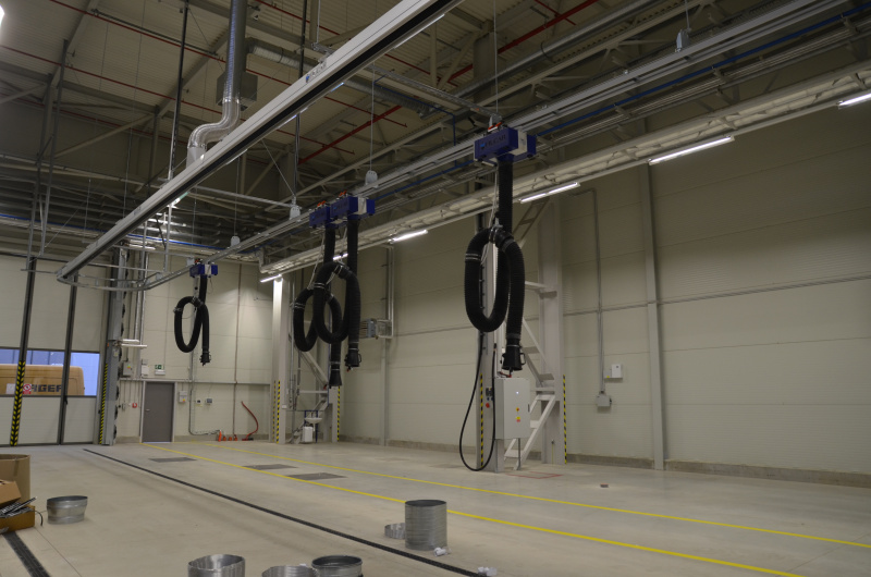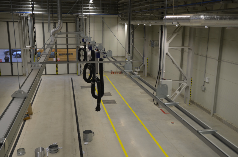 Realizace kompletního odsávání pro servisní depo Plzeň. Instalace odsávacích drah osazených motorizovanými odsávacími vozíky s automatickou vratkou. Realizace kompletní elektroinstalace.