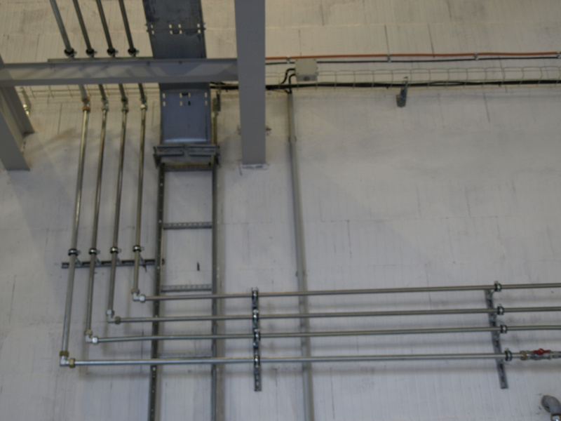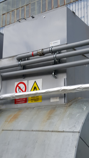 Rozvody provedeny z ocelového potrubí v požadovaných místech s izolací.
