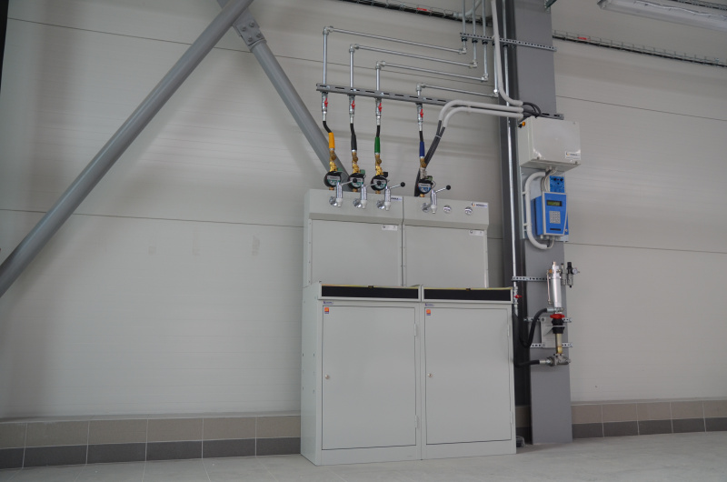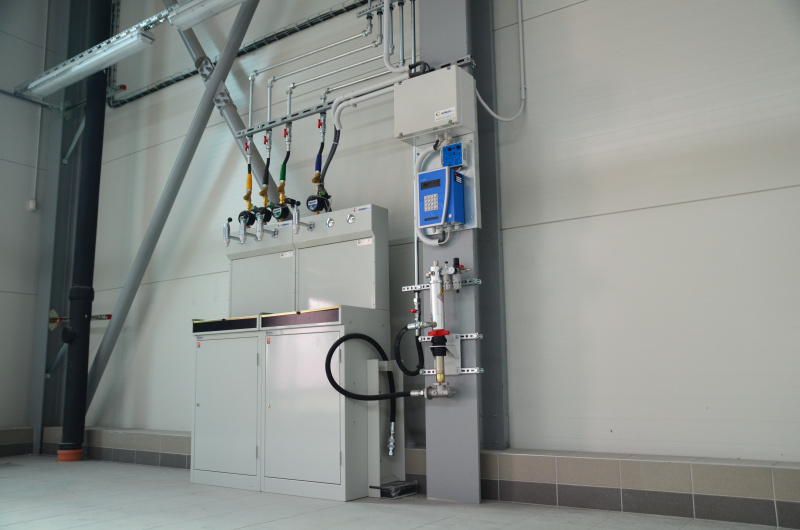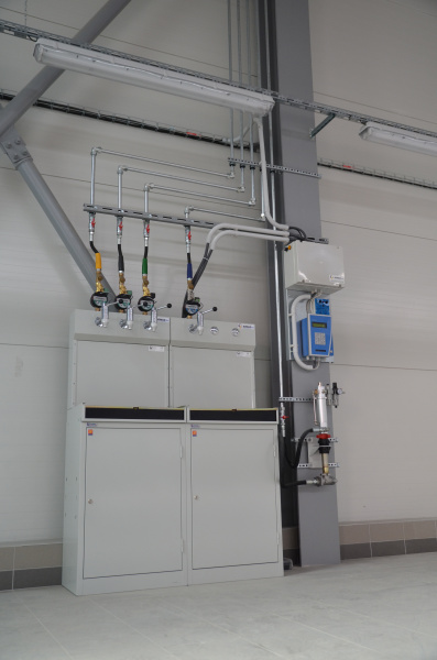 Kompletní realizace olejového hospodářství pro největšího prodejce automobilů v České republice. Výdej nových olejů na olejových barech. Vše napojeno na elektronický systém výdeje olejů s evidencí uživatelů a zakázek a automatickými exporty do nadřazeného systému Helios. Použitý olej skladován v dvouplášťových kvadratických nádržích. Plnění a odsávání olejů pomocí stáčecí skříně umístěné na fasádě.