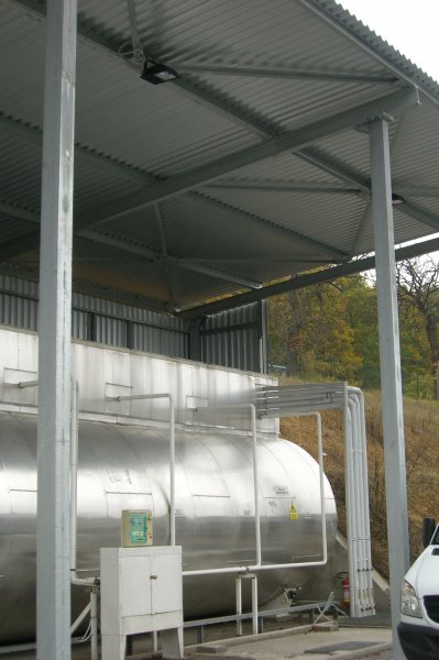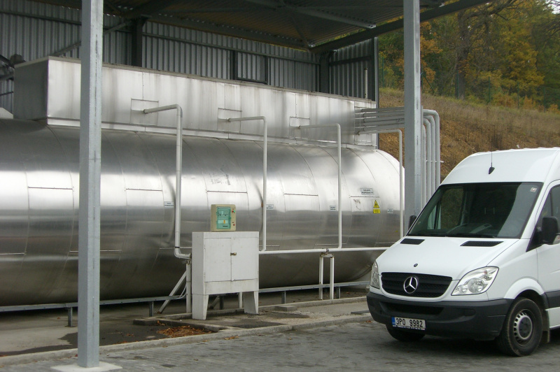 Dodávka dvouplášťové vícekomorové nádrže pro výrobu BOBCAT Dobříš. Nádrž vč. izolace a vyhřívání. Každá komoro se snímáním hladiny s GSM přenosem informací o stavu hladiny. Distribuce do výroby pomocí průmyslových pneumatických čerpadel napojených na dvouplášťový ocelový rozvod umístěný v zemi.