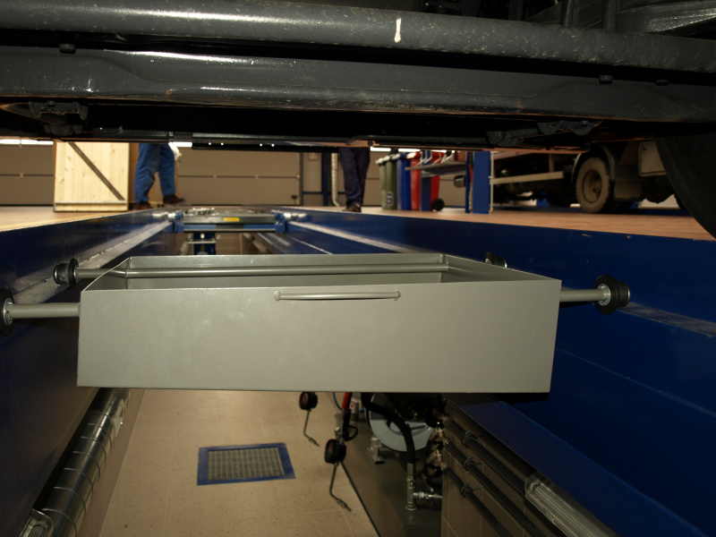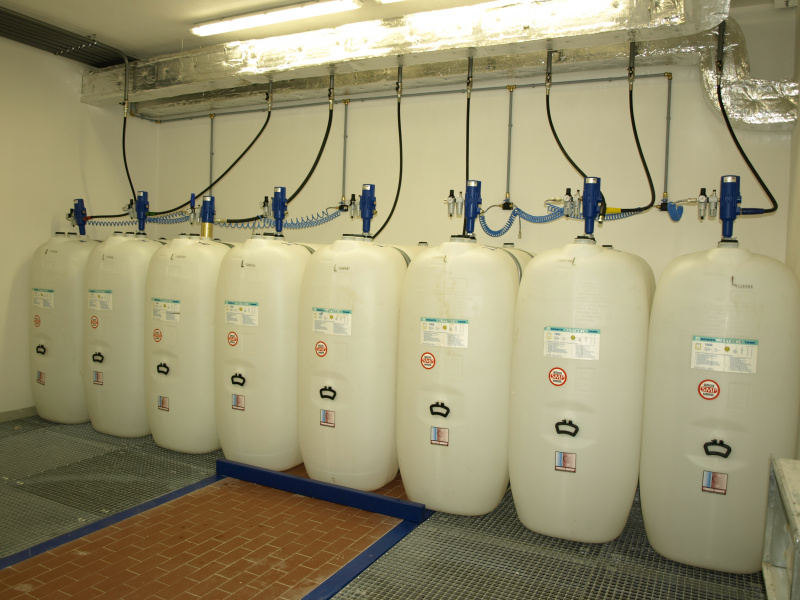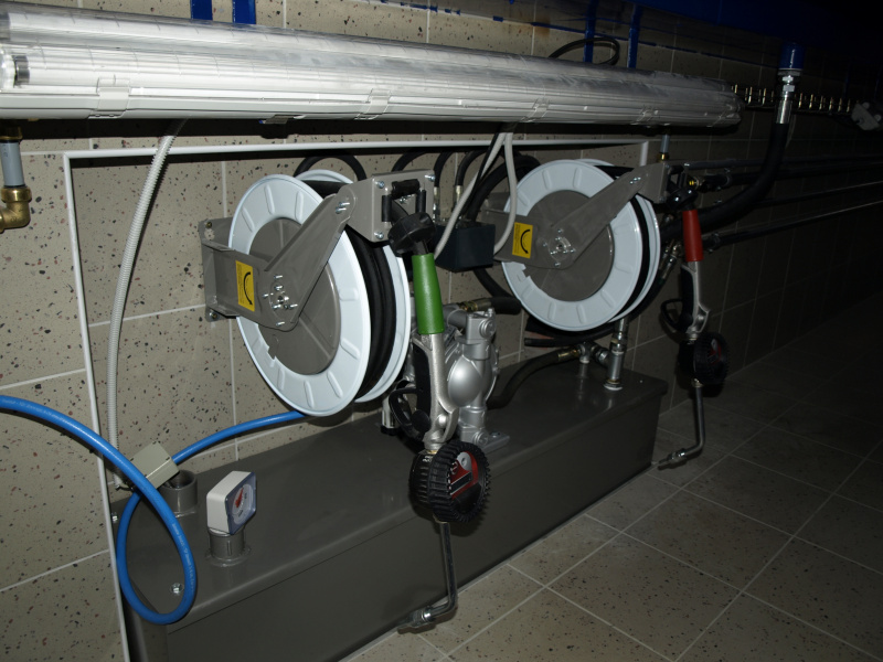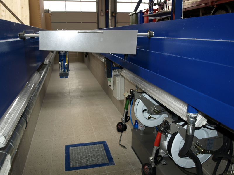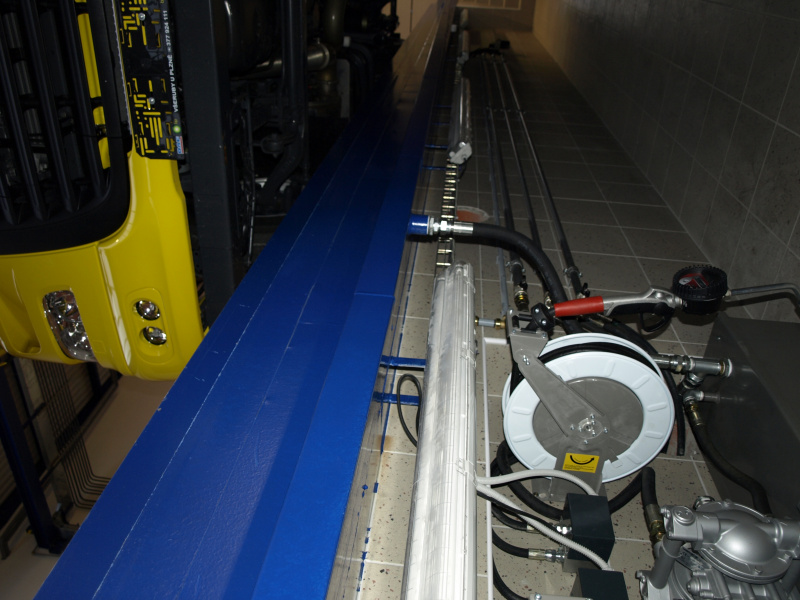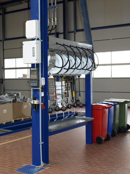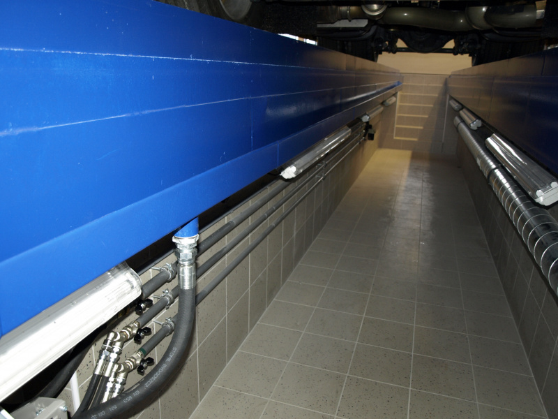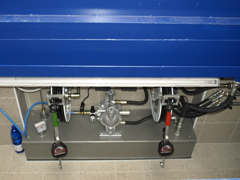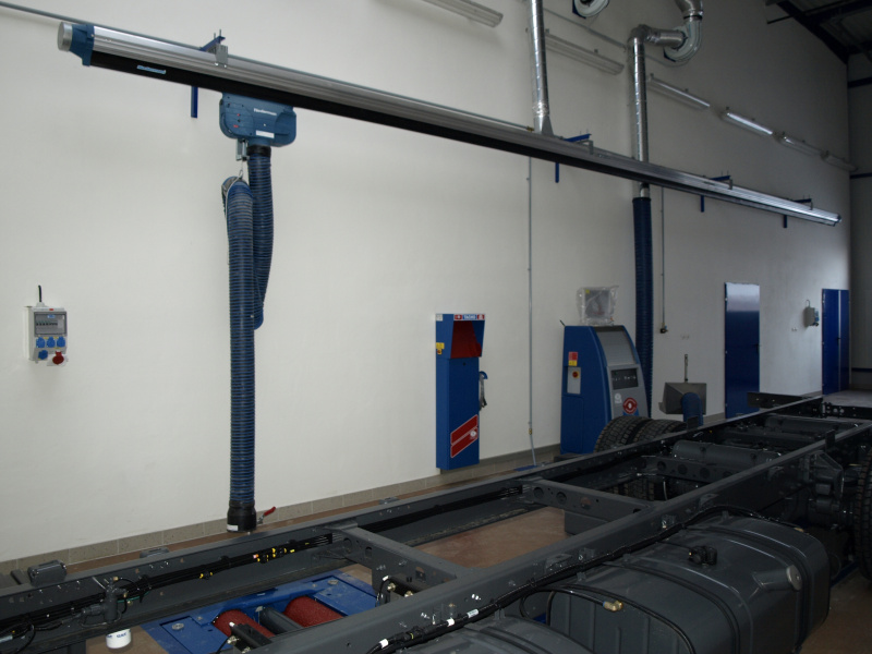 Olejové hospodářství pro servis nákladních automobilů DAF Nýřany. Realizace výdeje nových olejů na výdejním stojanu a v montážní jámě. Odsávání použitého oleje. Součástí dodávky také instalace odsávací lišty výfukových zplodin.