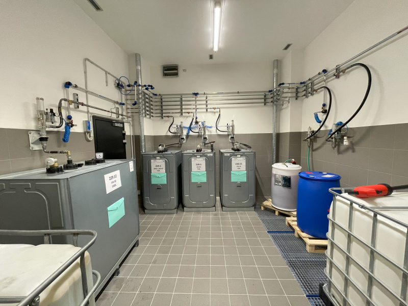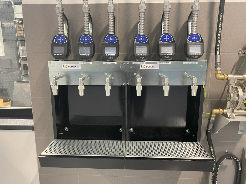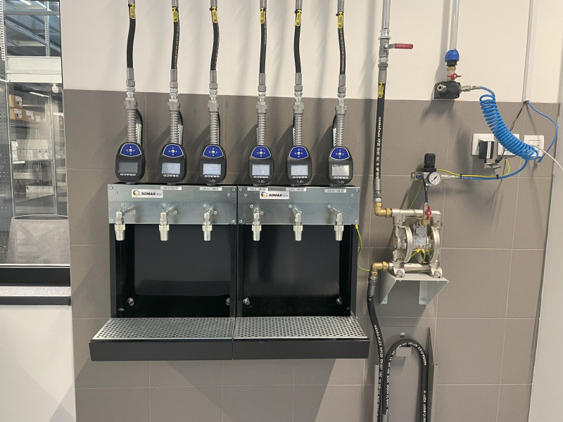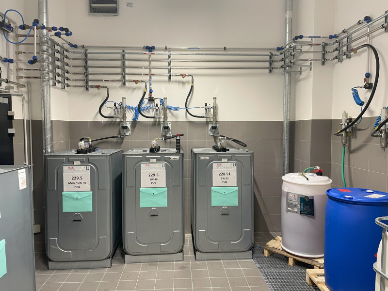 Kompletní technologií olejového hospodářství jsme vybavili servis osobních automobilů Mercedes-Benz Fa Rene v Pardubicích. Osadili jsme výdejní bar pro šest druhů nových kapalin, který je zároveň osazen novým bezdrátovým monitorovacím systémem Pulse Pro s napojením do nadřazeného DMS systému. Sběr použitého oleje probíhá do mobilních odsávaček/vypouštěček a od výdejního baru je pak odsáván do sběrné podzemní nádrže mimo budovu. Hladina v nádrži je měřena bezdrátovou sondou s přenosem do systému Pulse Pro. Výdej AdBlue na nástěnné sestavě s napojením na IBC kontejner umístěný v olejárně.