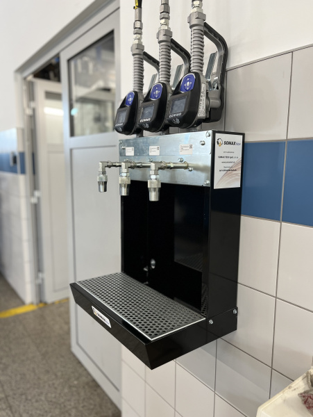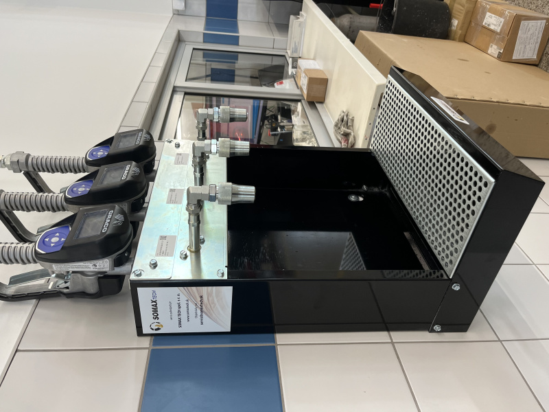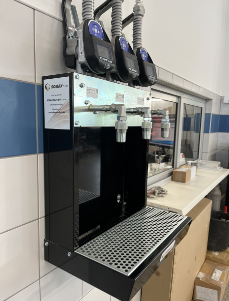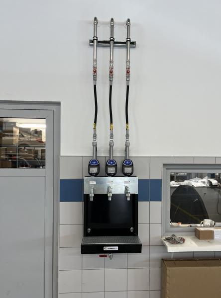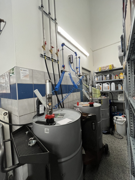 Olejové hospodářství pro servis Mercedes-Benz Autogroup TT v Trnavě. Výdej tří kapalin na olejovém baru osazeném moderním bezdrátovým monitorovacím systémem Pulse Pro s přímým napojením do systému DMS Incadea.