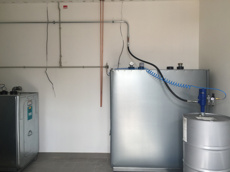 Dodávka výdeje nových olejů a sběru použitého oleje pro servis Mercedes-Benz VSP Auto Plzeň. Výdej nových olejů na olejovém baru, který je vybavený monitorovacím systémem pro evidenci s přenosem dat do PC. Sběr použitého oleje do dvouplášťové celokovové nádrže se snímáním max. hladiny.