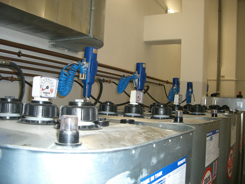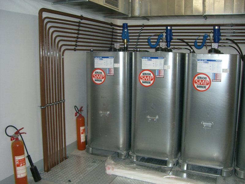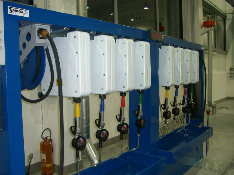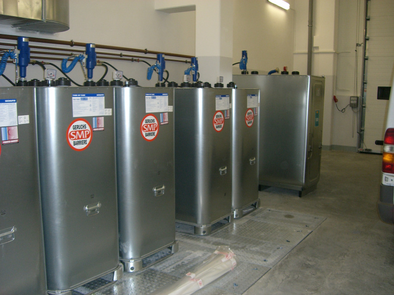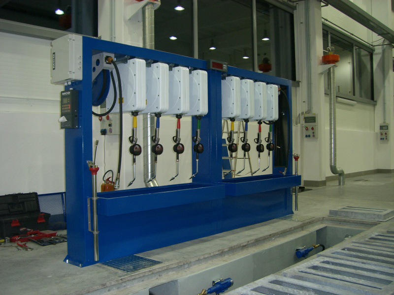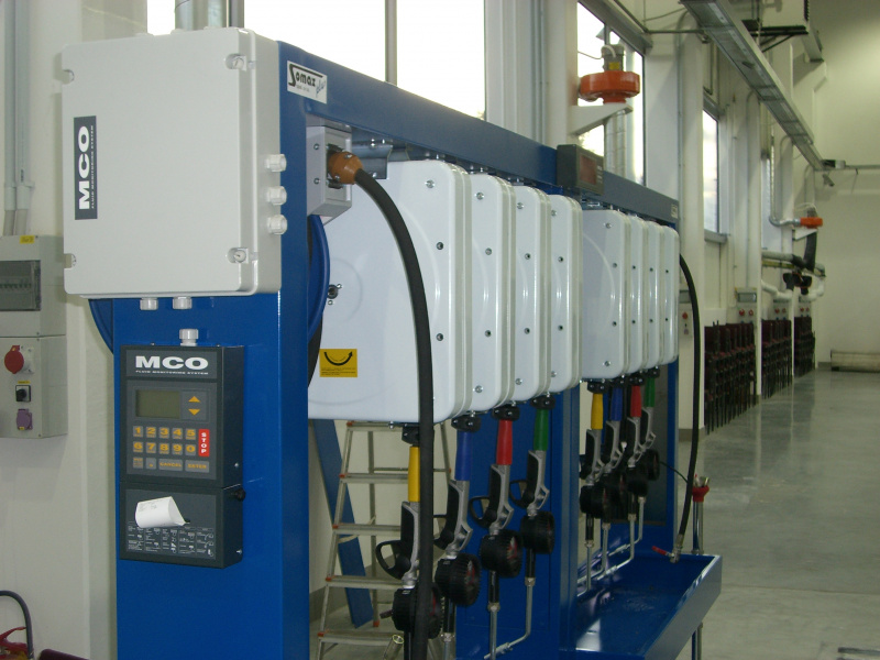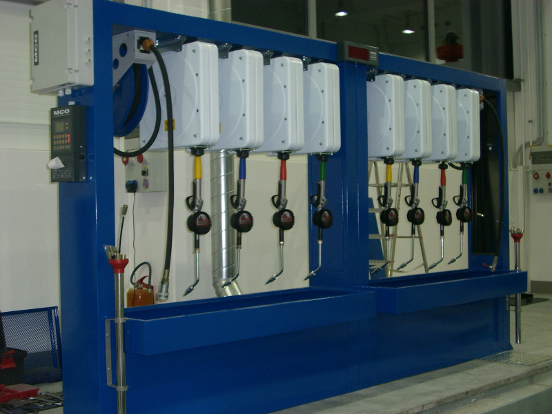 Vybavení pro výdej olejů a sběr použitého oleje pro servisní středisko společnosti Mrózek. Výdej zabezpečen monitorovacím systémem s přenosem dat do PC.
