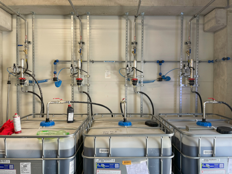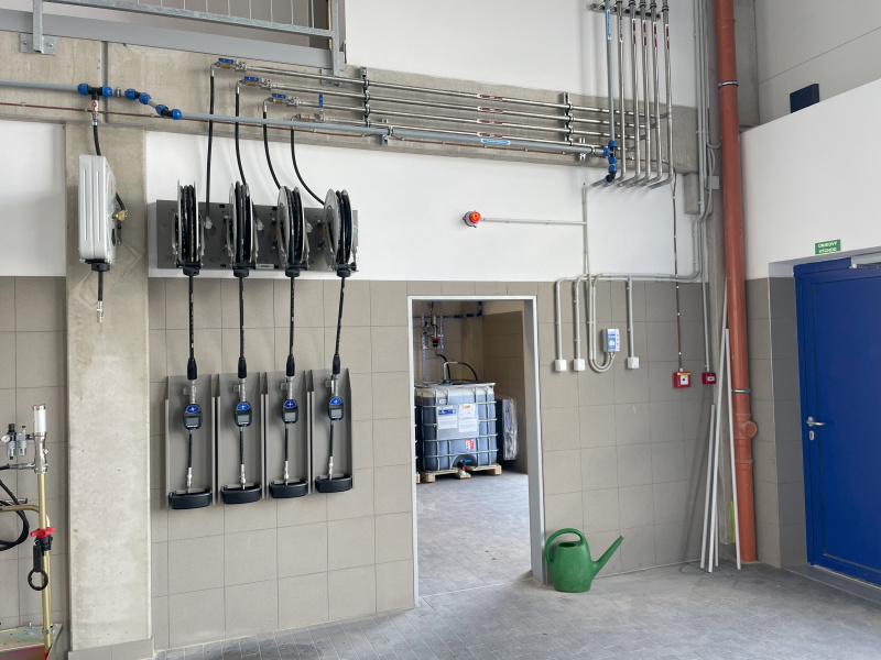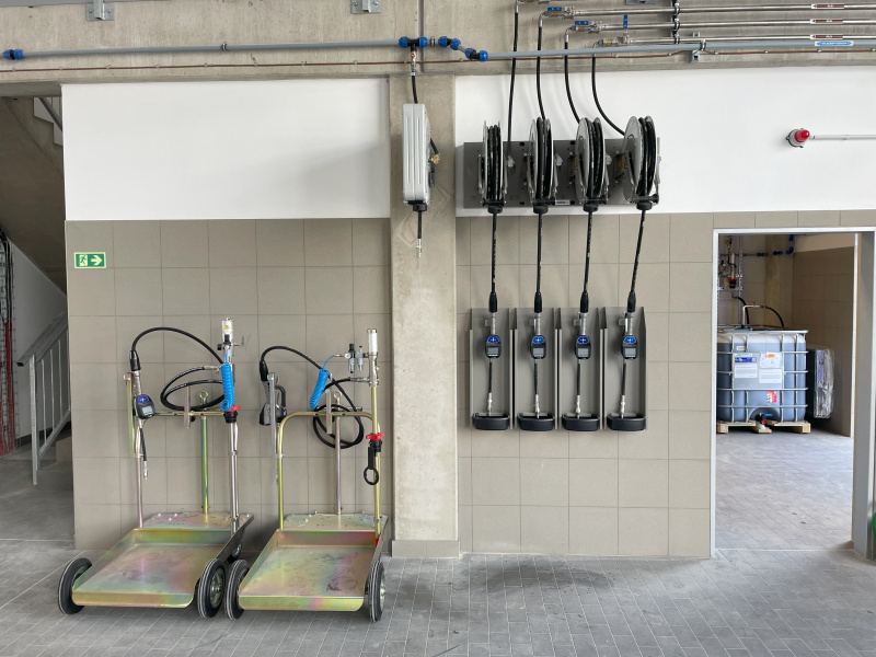 Vybavení olejového hospodářství pro významnou spediční společnost Nikka Logistics. Výdej nových kapalin probíhá jak na stěně prostřednictvím navíječů tak na mobilních vozících což umožňuje bezdrátový monitorovací systém Pulse Pro s napojením do softwaru SoftApp.