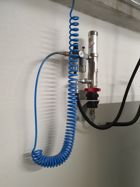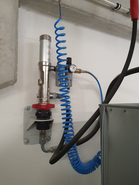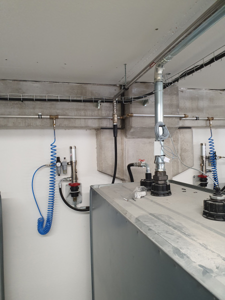 Dodávka kompletního olejového hospodářství pro jednu s největších pil v Evropě - Pilu Štětí. Plnění skladovacích nádrží umístěných v patře pomocí stáčecí skříně umístěné na fasádě objektu a vybavené elektronikou pro snímání hladiny. Výdej olejů pomocí navíječů umístěných na stojanu v prostoru dílny. Stojan osazen elektronickou evidencí výdejů s přenosem dat do PC.
