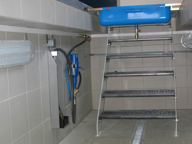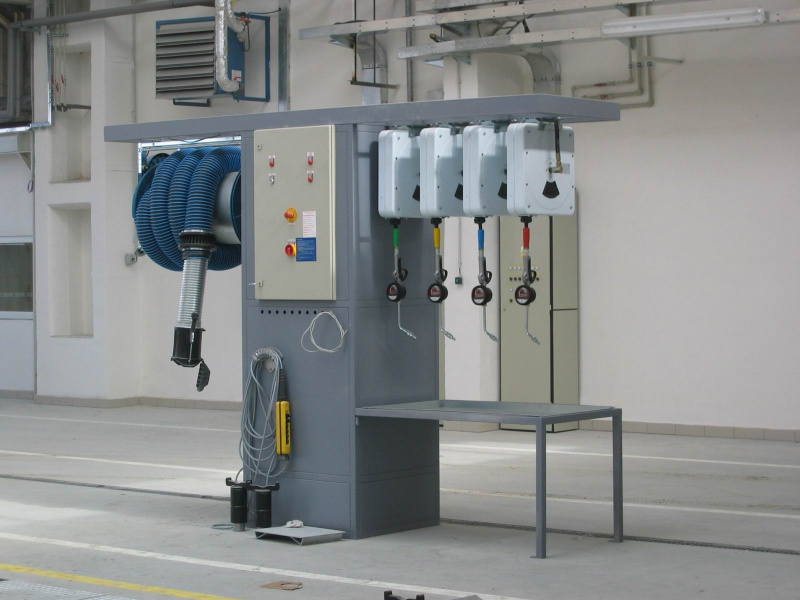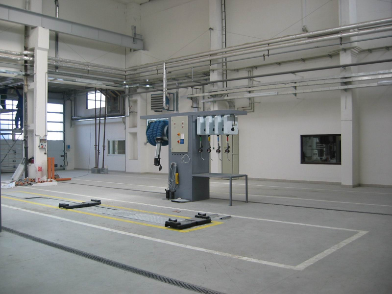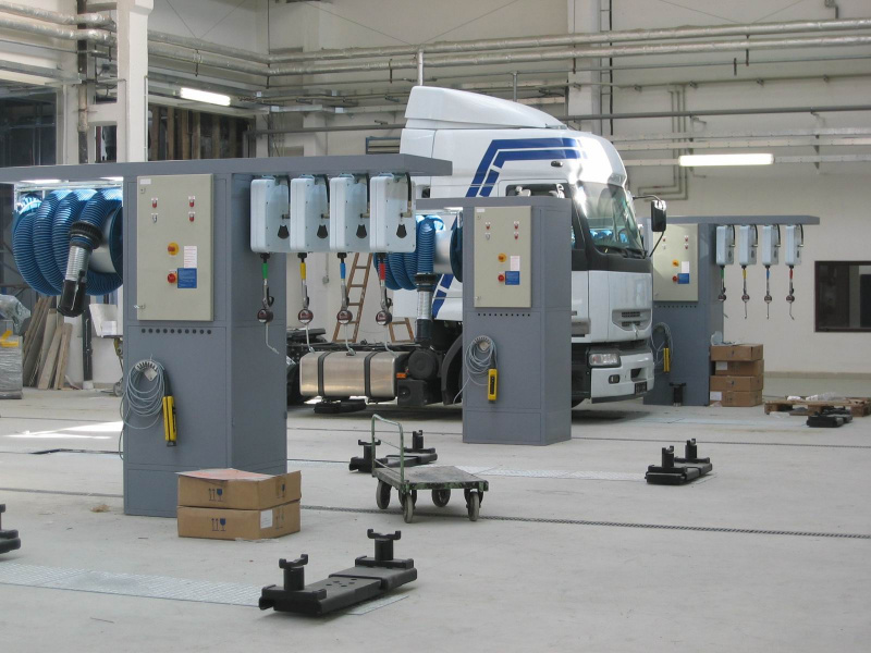 Dodávka kompletního olejového hospodářství pro servis nákladních vozů Renault v Olomouci. Dodávka vč. na zakázku vyrobených výdejních stojanů se zabudovaným odsáváním.