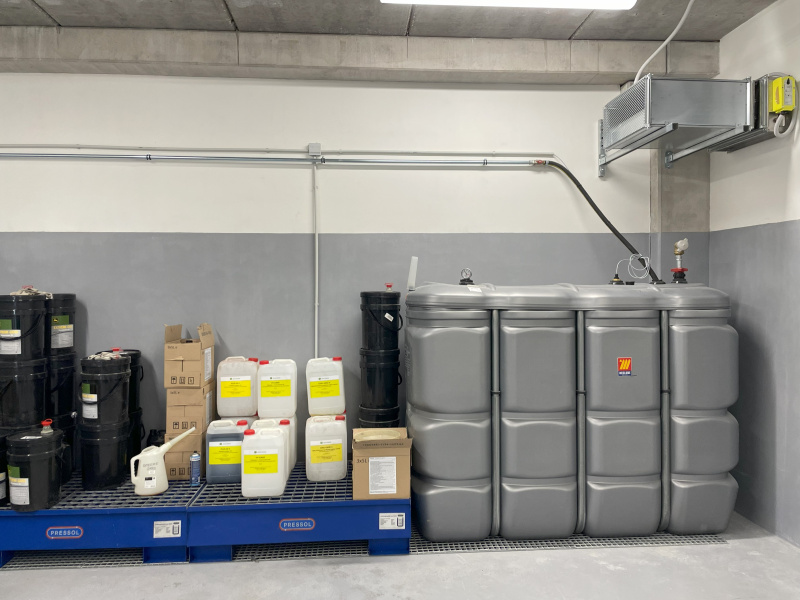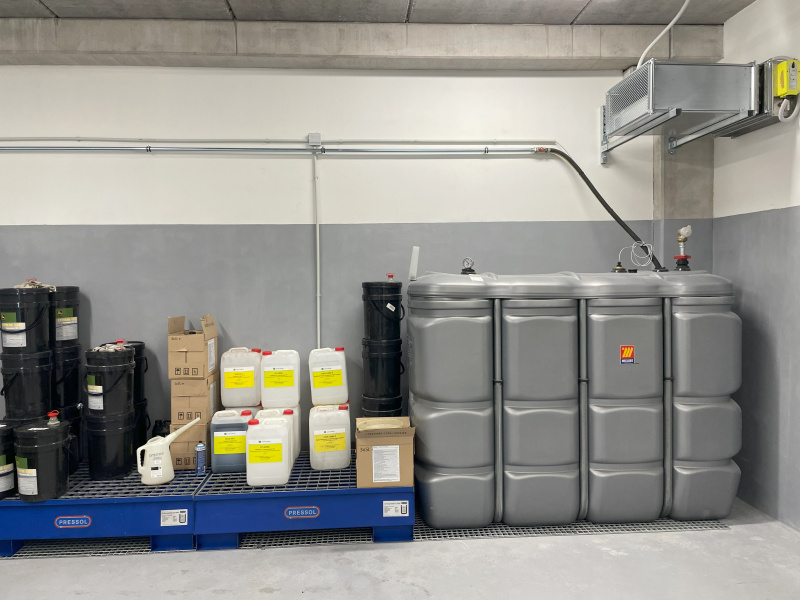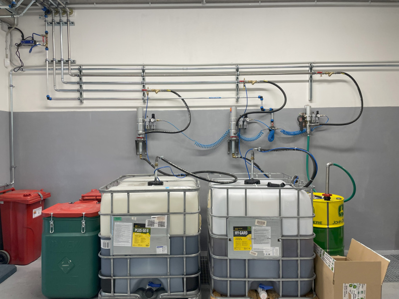 Realizace olejového hospodářství pro společnost STROM Praha ve Velkých Bílovicích, která na českém trhu zajišťuje dodávku a servis především techniky John Deere. Výdej kapalin monitorován moderním bezdrátovým systémem Pulse Pro s napojením přímo do systému STROM - Helios. Sběr použitého oleje s montážních jam a sběrných mobilních odsávaček/vypouštěček.