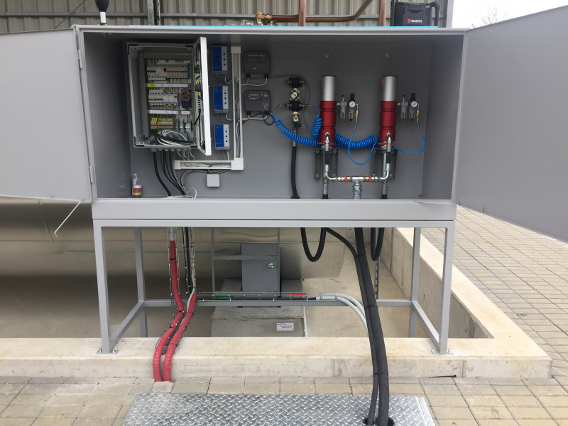 Realizace olejového hospodářství pro výrobu Valeo Žebrák. Skladování speciálního vypařovacího oleje v celokovové dvouplášťové nádrži vybavené izolací a vyhříváním s termostatem. Kapacita nádrže 30.000 l. Nádrž osazena míchacím systémem. Dodávka speciálního rozvaděče pro řízení funkce čerpadel a veškeré elektroniky. Celý systém automaticky dávkuje olej k výrobním strojům. Rozvody provedeny z lisovaného ocelového potrubí.