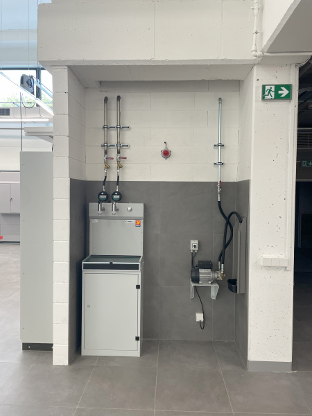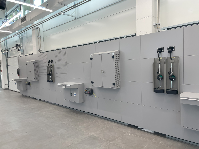 Kompletní dodávka olejového hospodářství pro nový servis osobních automobilů Volvo v Praze na Stodůlkách. Výdejní místa instalována do stěnových panelů, dle požadavku Volvo.